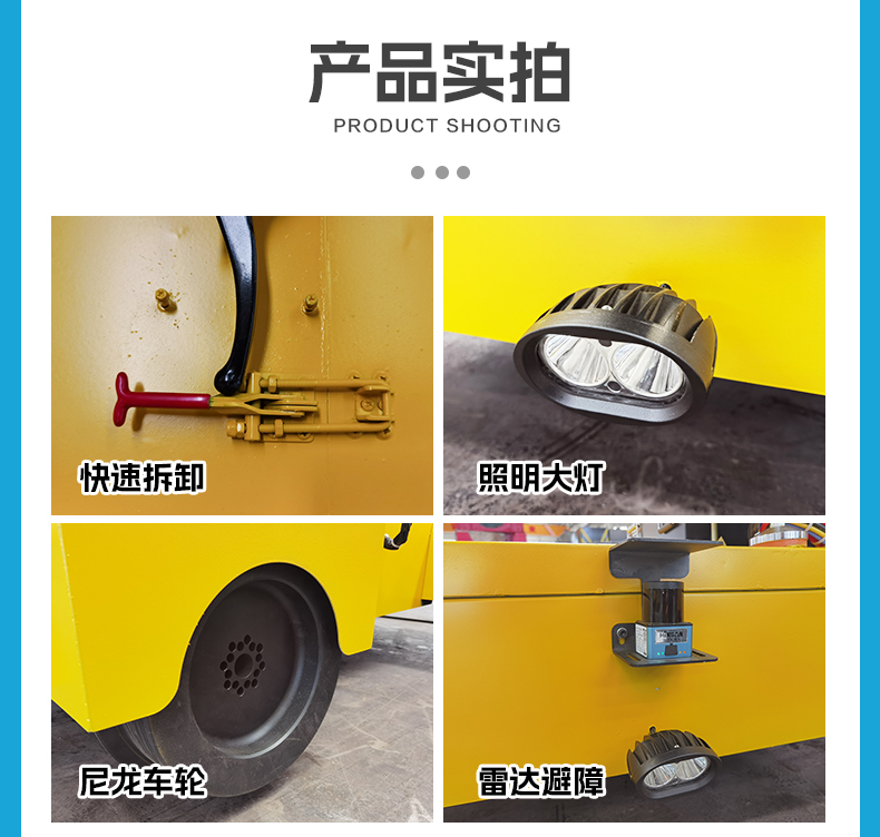 描   述: 鋁合金地鐵軌道巡檢車,用于搭載檢測設(shè)備對地鐵軌道進(jìn)行探傷檢測作業(yè)的移動平臺,整車模塊化設(shè)計(jì)可快速拆裝,方便上下軌搬運(yùn),小車長1.2米寬1.5米額定載荷0.5噸,臺面預(yù)留安裝孔位方便檢測儀器、探傷裝置、高清攝像頭組等設(shè)備安裝,PLC智能控制系統(tǒng)無線遙控前進(jìn)后退剎車盡在掌握,一鍵開啟定速模式,車輛自動勻速前進(jìn)或后退解放雙手。