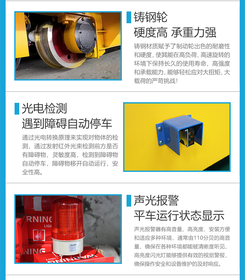 公司保障:電動(dòng)平車、軌道平車的承重安全系數(shù)不低于60%