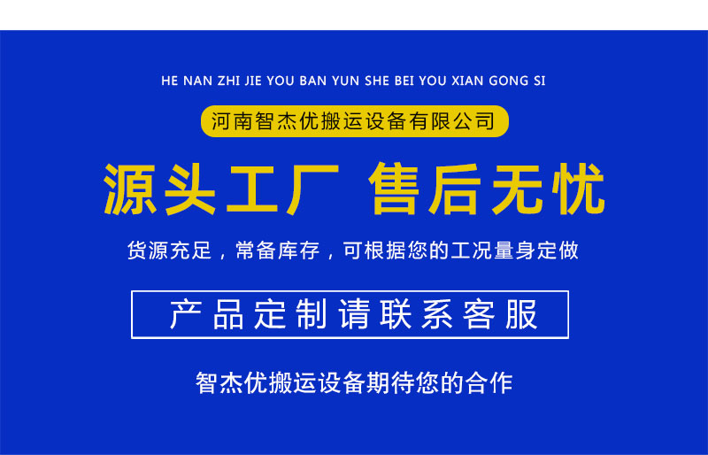 河南智杰優(yōu)搬運(yùn)設(shè)備有限公司以“質(zhì)量取勝,服務(wù)取勝”的經(jīng)營(yíng)理念,為了客戶的利益,公司建立了一整套快速的質(zhì)量信
