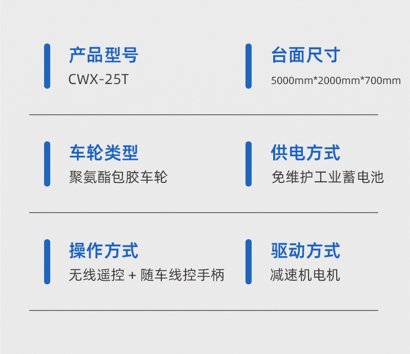 描   述: 智杰優(yōu)搬運(yùn)為金屬制造業(yè)設(shè)計(jì)生產(chǎn)的鋼板運(yùn)輸無(wú)軌地平車,長(zhǎng)5米寬2米高0.7米額定載重25噸,應(yīng)用于跨車間鋼板、鋼材的成品及原料轉(zhuǎn)運(yùn)作業(yè)。該車為免維護(hù)蓄電池供電空滿載交替運(yùn)行時(shí)間不低于6小時(shí),配備智能充電機(jī)電流平穩(wěn)充滿自動(dòng)斷電,大功率電機(jī)自帶編碼器,可以***控制電機(jī)轉(zhuǎn)動(dòng),實(shí)現(xiàn)高精度的運(yùn)動(dòng)控制,無(wú)線遙控操作前進(jìn)后退左轉(zhuǎn)右轉(zhuǎn),轉(zhuǎn)彎方式采用液壓轉(zhuǎn)向,操縱輕便靈活動(dòng)態(tài)響應(yīng)性好,方便跨車間的物料轉(zhuǎn)運(yùn),聚氨酯包膠