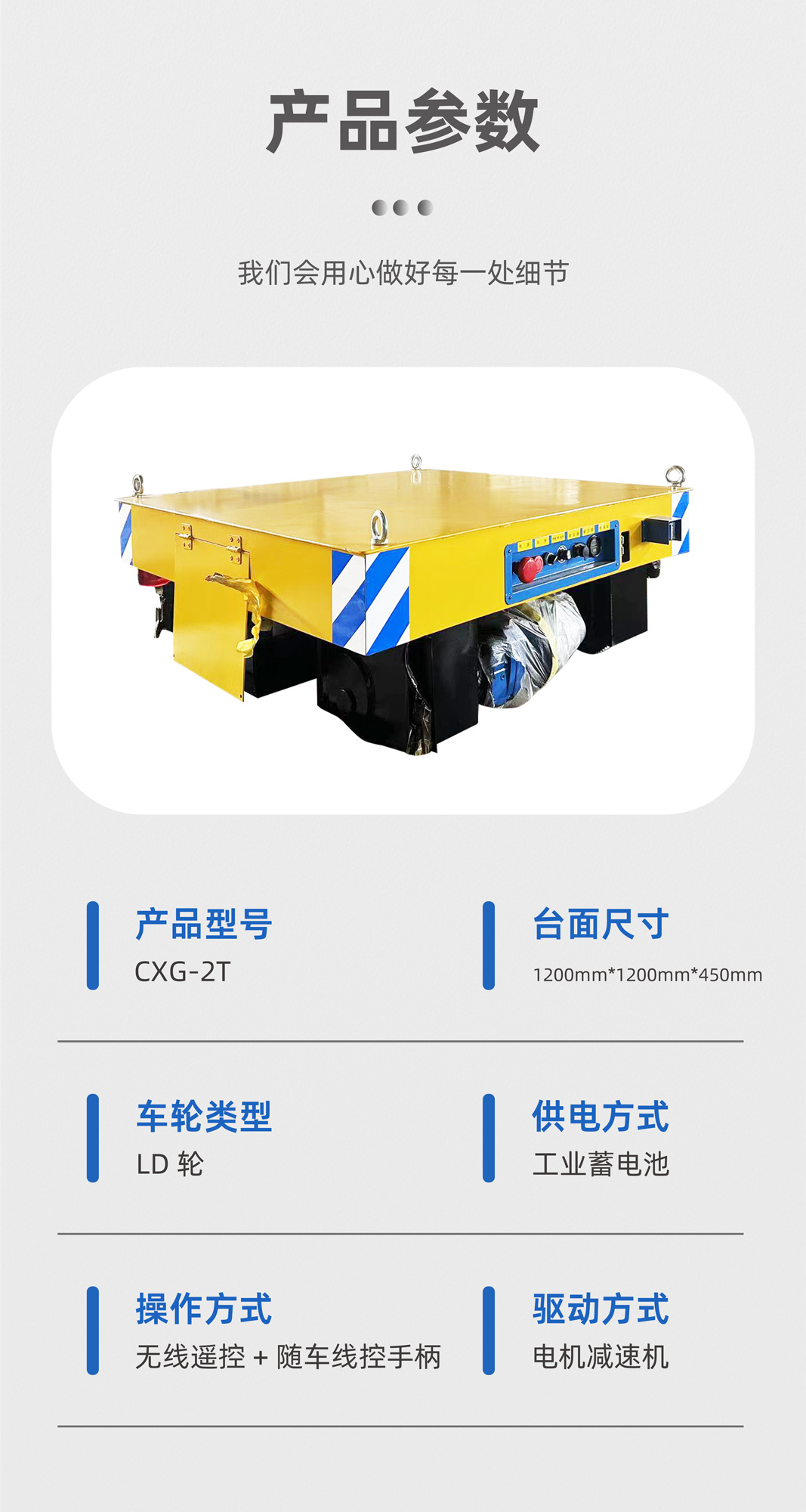 這是一臺小型軌道搬運(yùn)車載重試機(jī)現(xiàn)場,整車長1.2米寬1.2米高0.45米載重2噸,箱梁結(jié)構(gòu)穩(wěn)定牢固,不易變形;無線遙控平車前進(jìn)后退,采用鑄鋼車輪,硬度高耐磨損承重力強(qiáng),電機(jī)減速機(jī)驅(qū)動平車進(jìn)行搬運(yùn)作業(yè),限位開關(guān)可實現(xiàn)平車定點停靠作業(yè),前后配備光電檢測遇障自停,聲光報警保障安全,該系列電動平車還可進(jìn)行功能升級、升降臺面、弧形軌道運(yùn)行等。